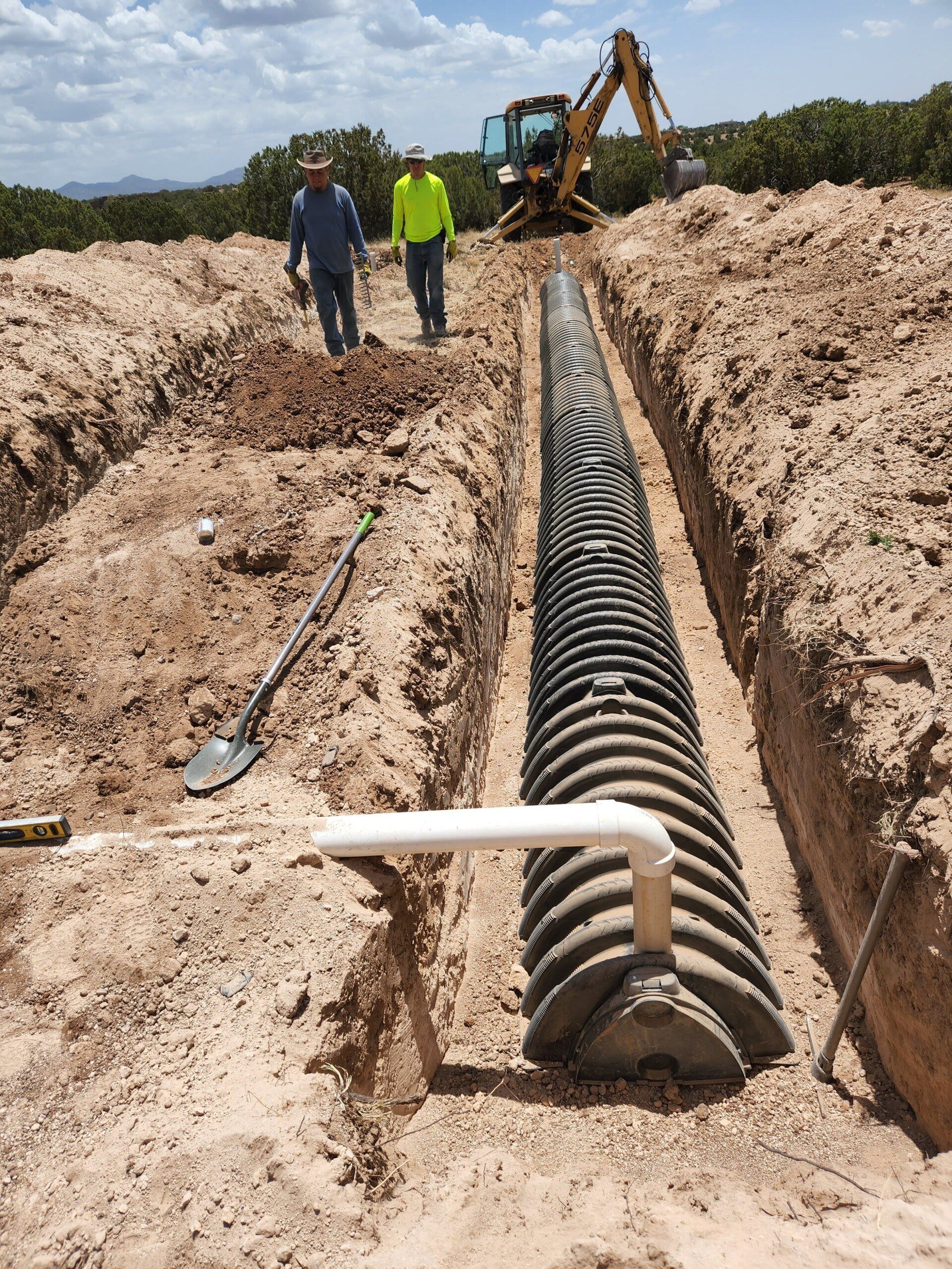 Tumbleweed Torchcraft & Excavation LLC is a small business located near Espanola, New Mexico. You don't need a passport to visit....just come on by!!!! We provide a unique mix of services. Our primary focus is on the evaluation, design, and installation of state-of-the-art Septic Systems. The science behind protecting our valuable ground water has advanced to such a degree that there are now many alternatives to the ordinary septic system. Issues such as high ground water, small lot size, and setback requirements all play a role in the need for expert design and installation of your septic system. We have extensive experience with Mound septic sytems, split-flow septic systems, seepage pits, elevated septic systems, as well as BioMicrobics aerobic septic systems, which provide tertiary treatment of effluent for small lots that now require nitrogen reduction. We also have an artistic side! We enjoy the challenge to design and produce high quality metal silhouette art. These designs go well with any interior decor or we can dress up your gates, fences, doors, or pickup headache racks with our art.
